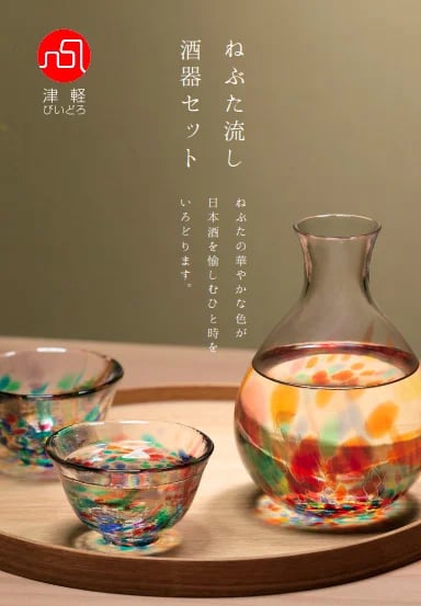 八彩睡魔祭系列 葫蘆形清酒器組 /津輕琉璃